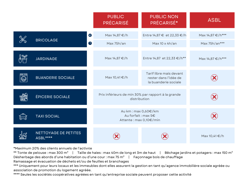 Sous certaines conditions, les petites ASBL peuvent faire appel aux services des IDESS pour certains services (voir conditions).